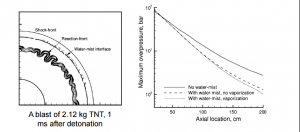 50 pound ağırlığında TNT, ve aynı eş değer ağırlıkta Destex ve PBXN-109 kullanılarak impuls ve ilk patlama dalgası basınç değeri olarak 70 gr/m3 damlacık yoğunluğunda %40, %36 TNT için düşüş, %43, %25 düşüş Destex için, %49, %38 PBXN-109 için düşüş sağlanabilmektedir (Kaynak Naval Research Lab, US NAVY, Blast Mitigation using water mist test series)