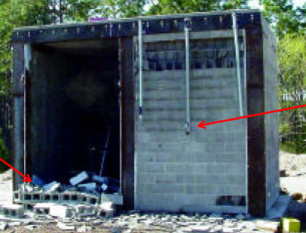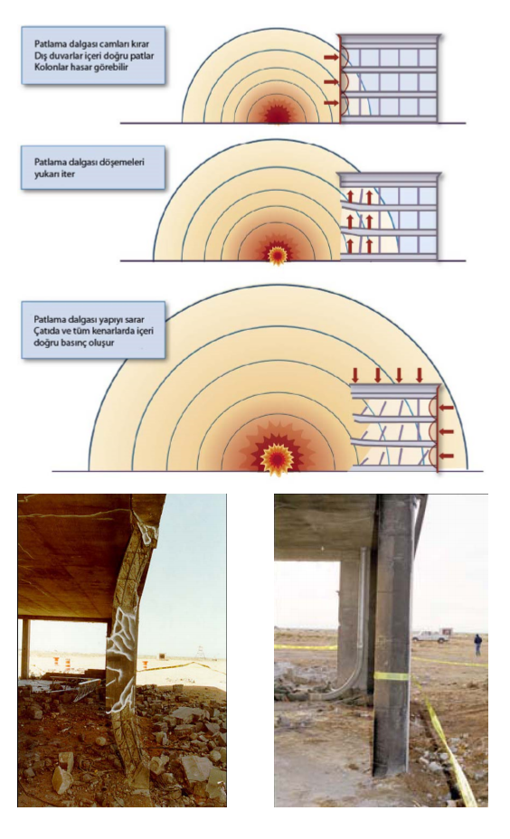 Yanda FEMA 427’ye göre bir patlamanın binaya etkisi görülmektedir. Patlama ani ve önceden tahmin edilemeyen bir yük olduğu için binaların taşıyıcı sistemlerinin güçlendirilmeleri gereklidir.